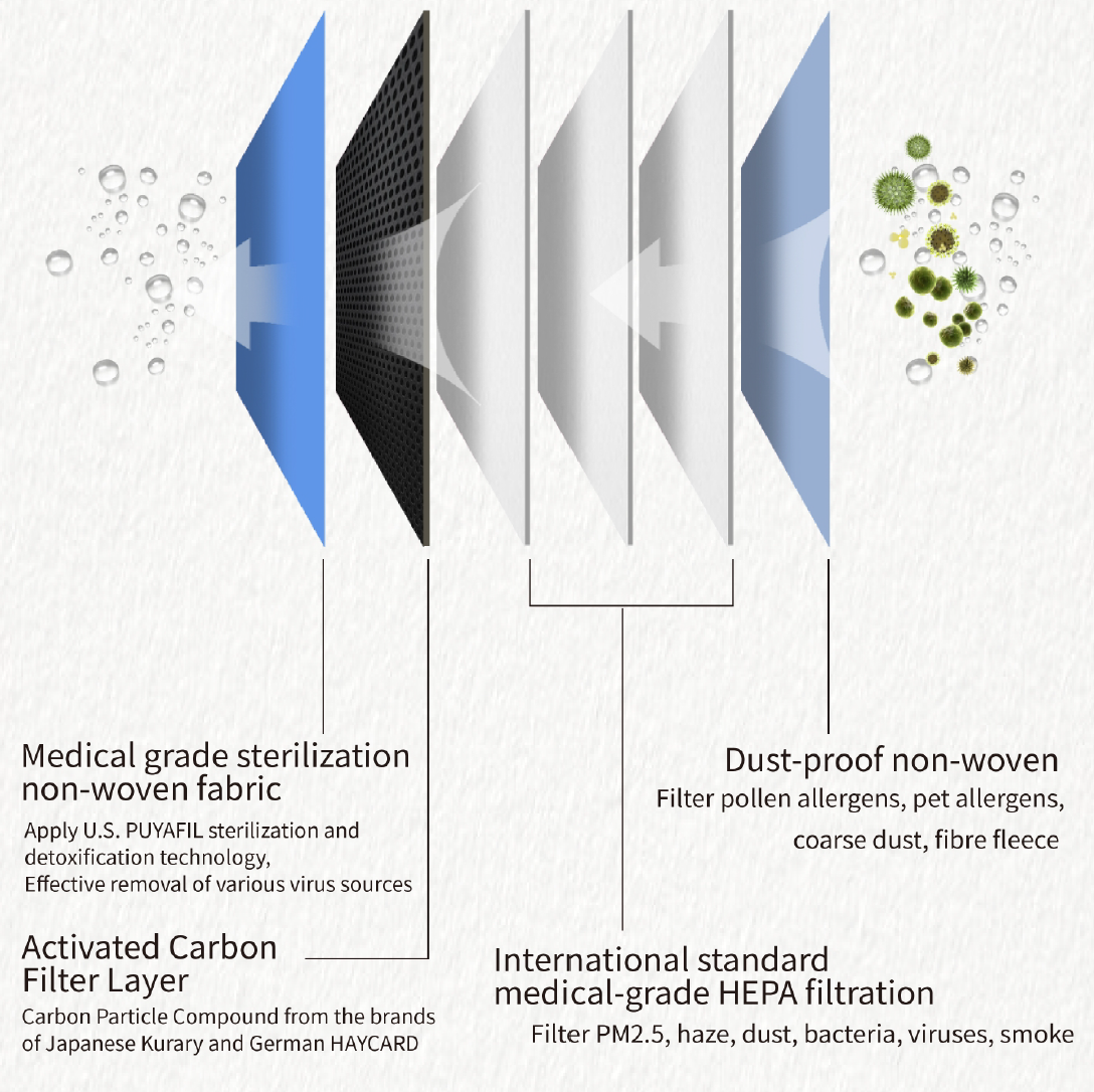 utilizzando filtri EPA ad alta efficienza la maschera riesce a bloccare oltre il 98% delle microparticalle in classe PM 2.5
